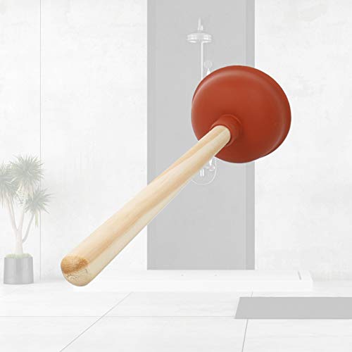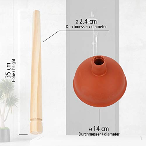 Lantelme Poppel Pömpel Treigbel rood met houten staal milieuvriendelijke afvoerreiniging voor toilet wastafel bad douche zonder chemicaliën (pluimig rood)