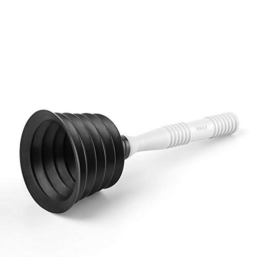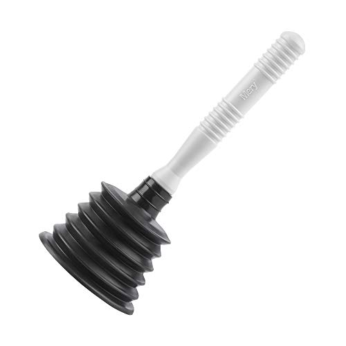 Afvoerreiniger met kunststof handvat en rubberen zuignap.
