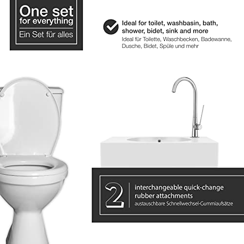 2 vervangbare rubberen opzetstukken in groot en klein formaat — Ideaal voor het schoonmaken van wastafel, badkuip, douche, gootsteen — Ideaal voor alle afvoeren of putjes