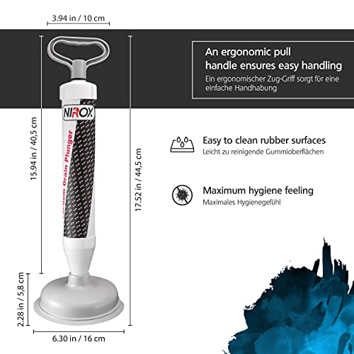 Specification: Nirox zuignap – gootsteenreiniger met hoge druk – vacuüm gootsteenontstopper met sterk zuigvermogen – onderhoudsvriendelijke plopper – ontstopper met krachtige perslucht