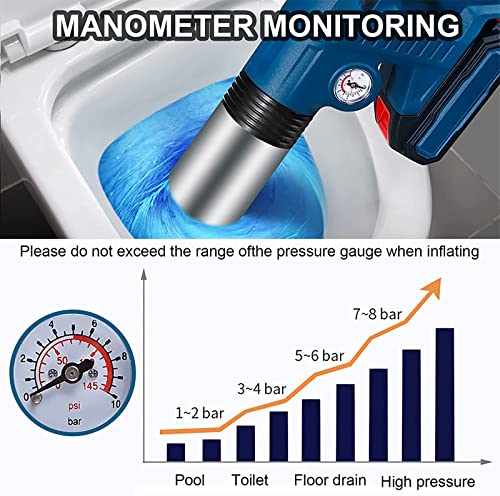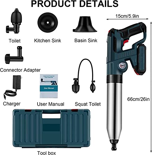 Specification: HUIBAOGONG Elektrische toiletplunjers, hoge druk luchtafvoer blaster reiniger met gereedschapskist, draagbare luchtaangedreven plunjer Unblocker geschikt voor keuken, badkamer en verstopte pijp