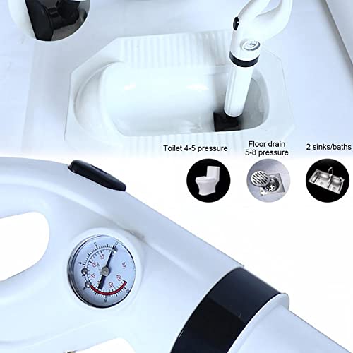 Luchtdruk plunjersets, luchtafvoer blaster pistool plunjer hoge druk met 4 koppen, dashboardbarometer, riool toilet aanrecht voor verstopt toilet keuken badkamer tubs (wit)
