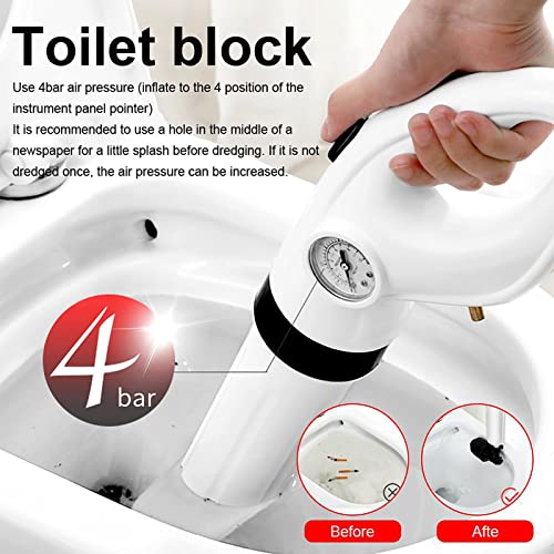 Specification: Luchtdruk plunjersets, luchtafvoer blaster pistool plunjer hoge druk met 4 koppen, dashboardbarometer, riool toilet aanrecht voor verstopt toilet keuken badkamer tubs (wit)
