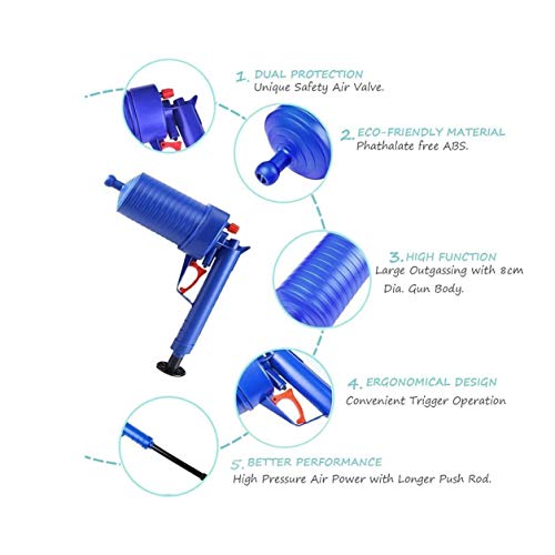 Specification: Power Toilet Plunger Set Afvoer Verstopping Remover Tool Snake Tub Drain Cleaner Opener Luchtafvoer Blaster Pistool Balg Plunger voor Wastafel Bad Toiletten Badkamer Douche Keuken Verstopte Pijp Bad