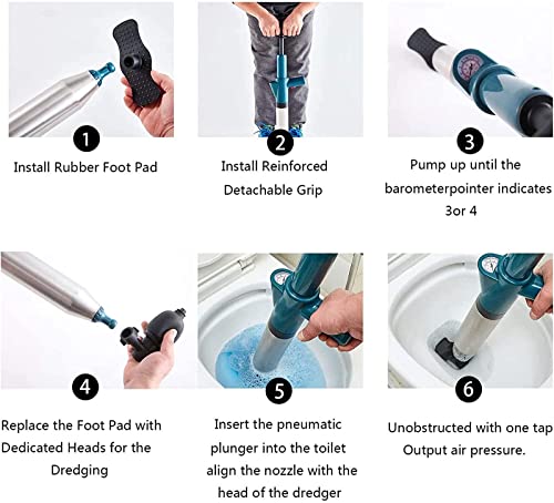 Specification: HUIBAOGONG Toilet plunjer hogedrukplunjer kit luchtafvoerblaster, met 4 vervangbare koppen voor gootsteen toilet vloerafvoer en pijpklomp, grijs