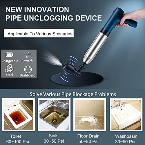 【Professionele kwaliteit】: gebruik de kracht van perslucht onder hoge druk om snel en eenvoudig de zwaarste verstoppingen weg te blazen. Speciaal gebruikt om het probleem van verstopping van huishoudelijk sanitair op te lossen.