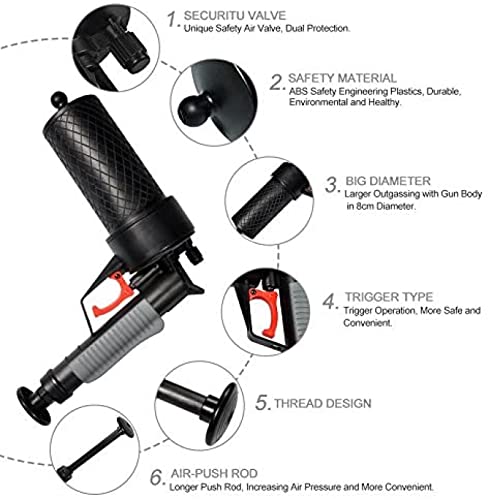 WERSATILE AND EFFECTIVE. It can deal with various blockages caused by all sorts of rubbish such as hair, cloth, tea, leaves, grease,oil dirties and so on.With high pressure air power, it clears drains quickly and easily.Perfect for works on sinks, tubs a