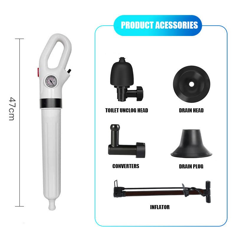 【Gebruik voor meerdere scènes】: de persluchtleidingreiniger kan snel slib, haar, toiletpapier, voedselresten, interne afvoerleidingen van gootstenen, toiletten, badkuipen, douches, gootstenen, gebogen kachels, vloerafvoeren, verstopte leidingen enz.