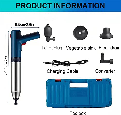 Specification: HUIBAOGONG Zware plunjer voor toilet, Elektrische toiletplunjers, Draagbare draadloze luchtaangedreven plunjer Unblocker voor badkamer, keuken, gootsteen, Vloerafvoerpijp verstopping