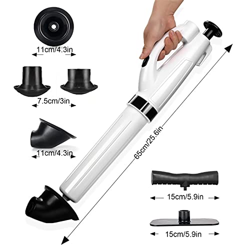 Specification: Opblaasbare Toiletplunjer, Multifunctionele Hogedruktoiletzuiger, Toiletplunjerontstopper Met 4 Plunjerkoppen En Inflator, Voor Toilet, Gootsteen, Vloerafvoer, Afvoerbassin (White)