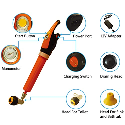 High Pressure Design: The discharge blaster uses the power of high pressure compressed air to blast away the toughest clogs quickly and easily. It is filled with gas by safe charging. More effective than traditional plungers. Read the instructions carefully before use.